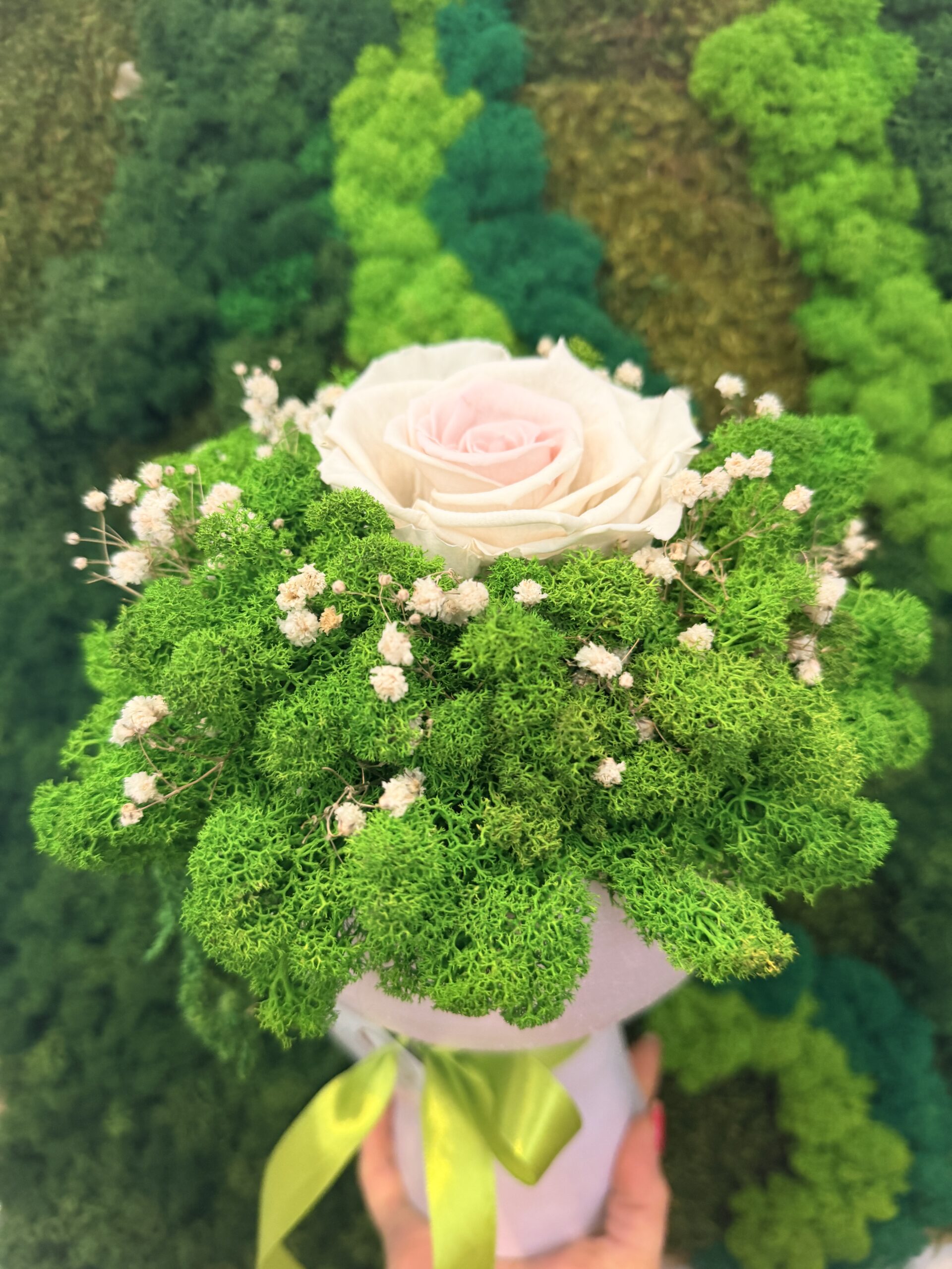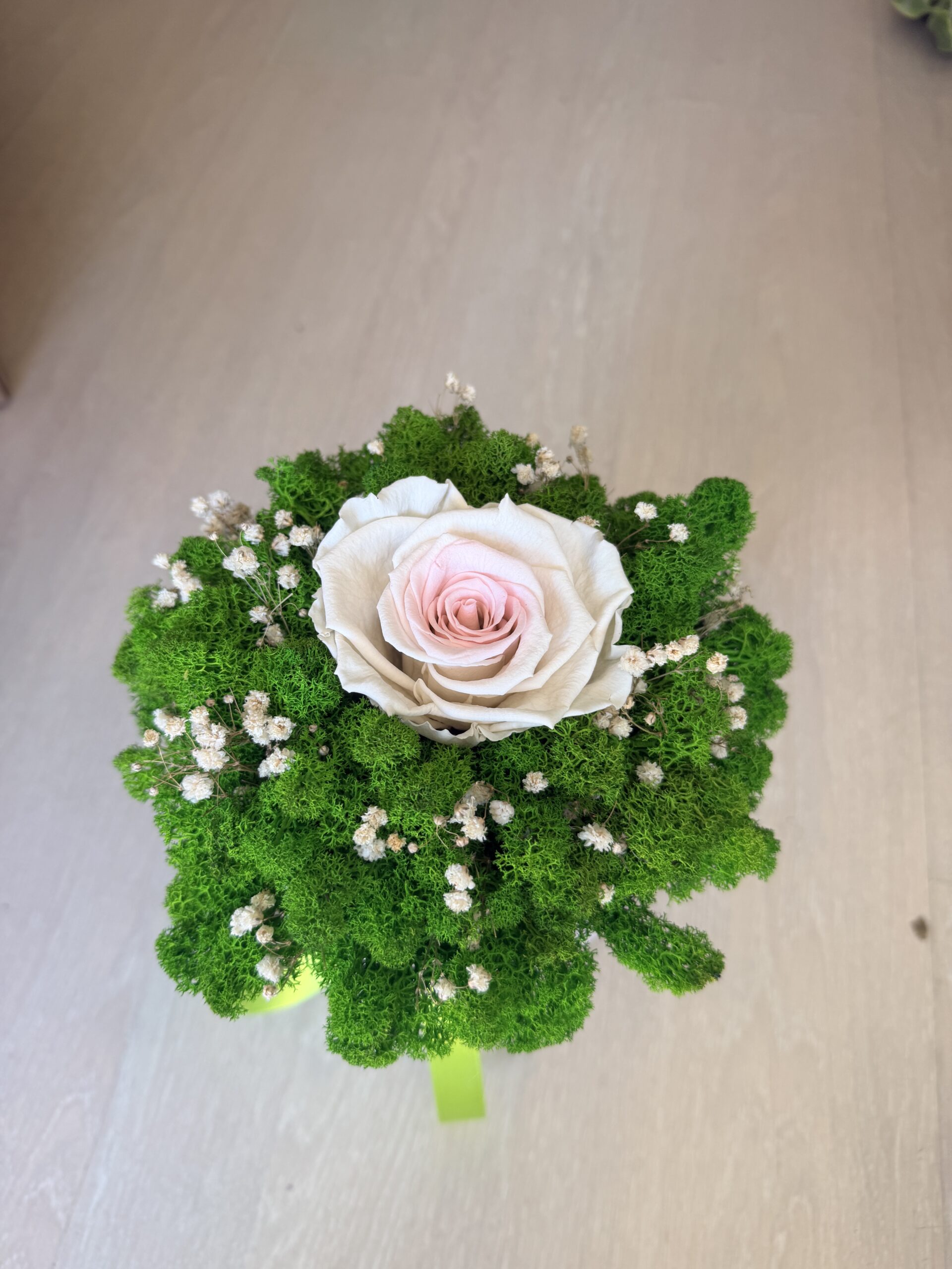 Producător/livrare: Beauty of FlowersAranjamente absolvent in cutie tip toca cu licheni si trandafir criogenat.